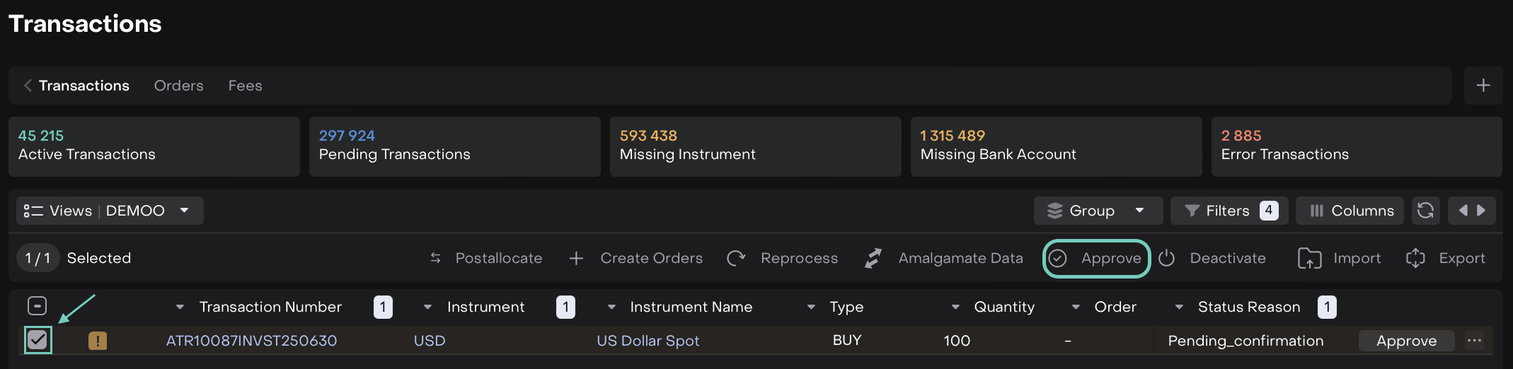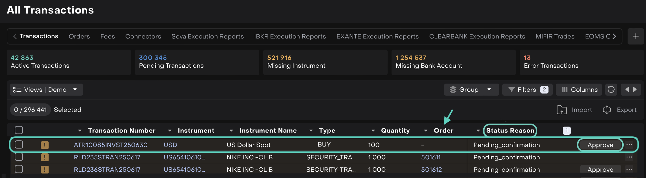 Sometimes, a bank transaction may not have a related order transaction, especially if the order was placed outside the platform or if integration is not yet set up. In these cases, you don’t need to match the transaction. You simply approve it directly.