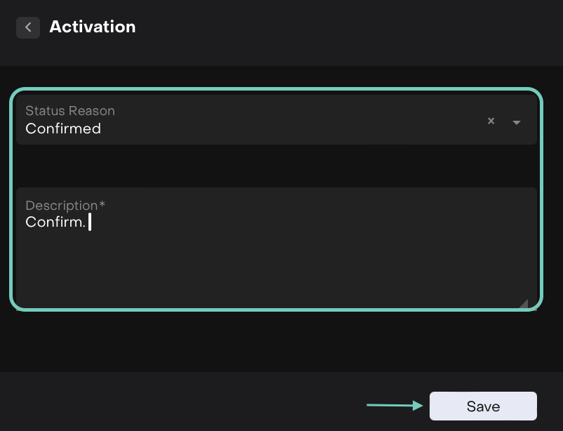 Select the Status Reason as Confirmed from dropdown and enter Description(*) then, click Save.