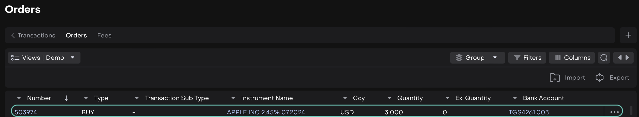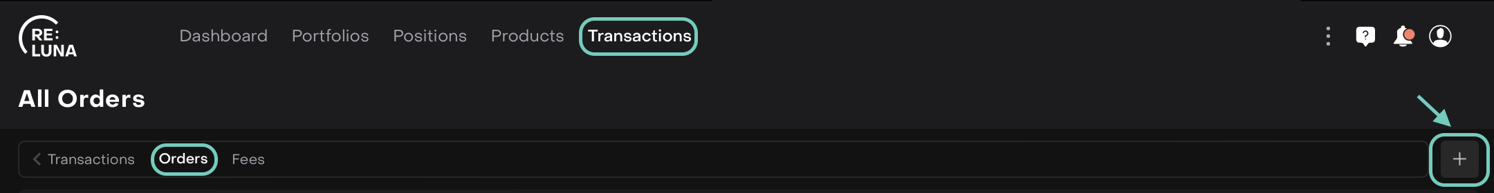Navigate to Transactions (Or Portfolios) on Dashboard.