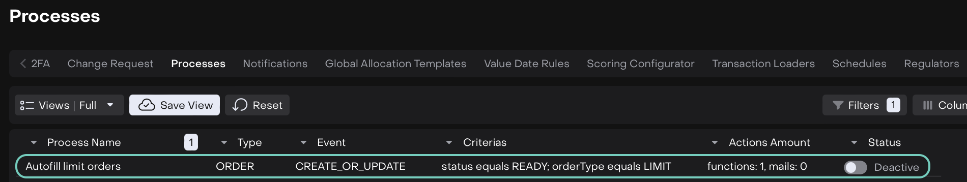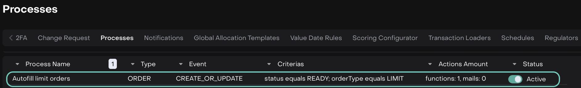 The Autofill and Auto-Execution flow for Limit and OTC orders is already set up on the platform as a Custom Process, but it’s turned Off by default.
