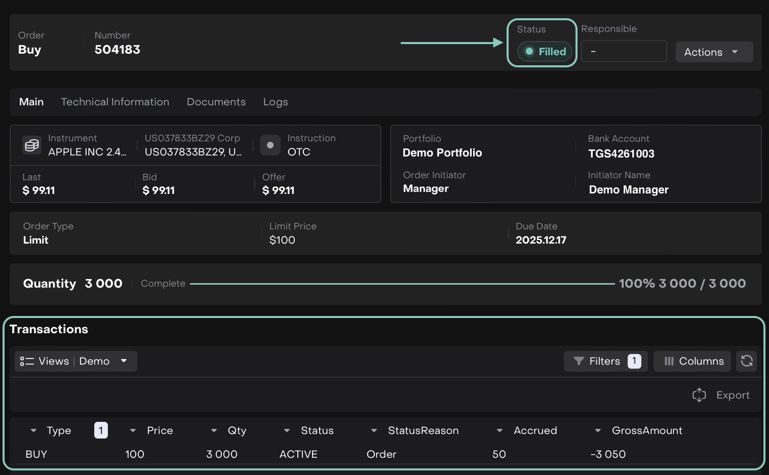 For example: This combination (Limit + OTC) is what triggers the Autofill and Auto-Execution process.