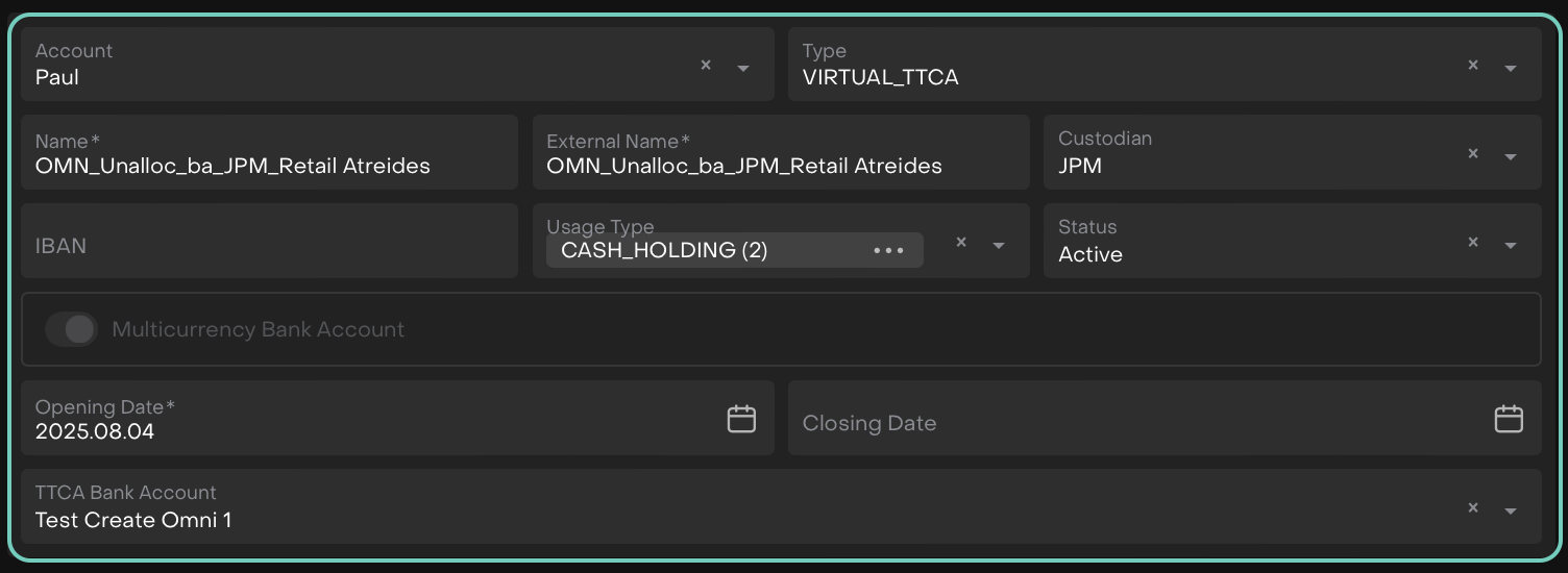 Create a Virtual/Virtual TTCA Bank Account