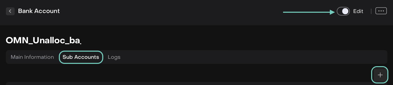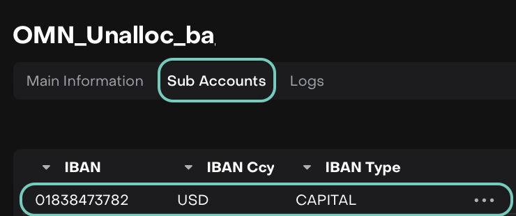 Open the Omnibus Bank Account → Sub Accounts tab.