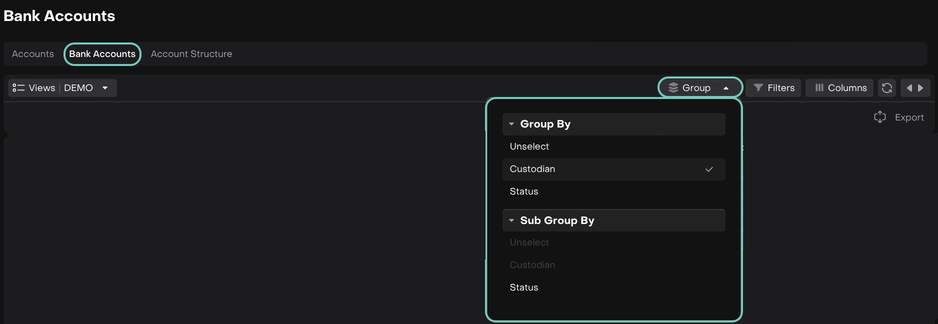 SOVATRADINGTYPE | Refers to the Sovereign or trading classification of the bank account. | Used for identifying specific trading or regulatory classifications. |