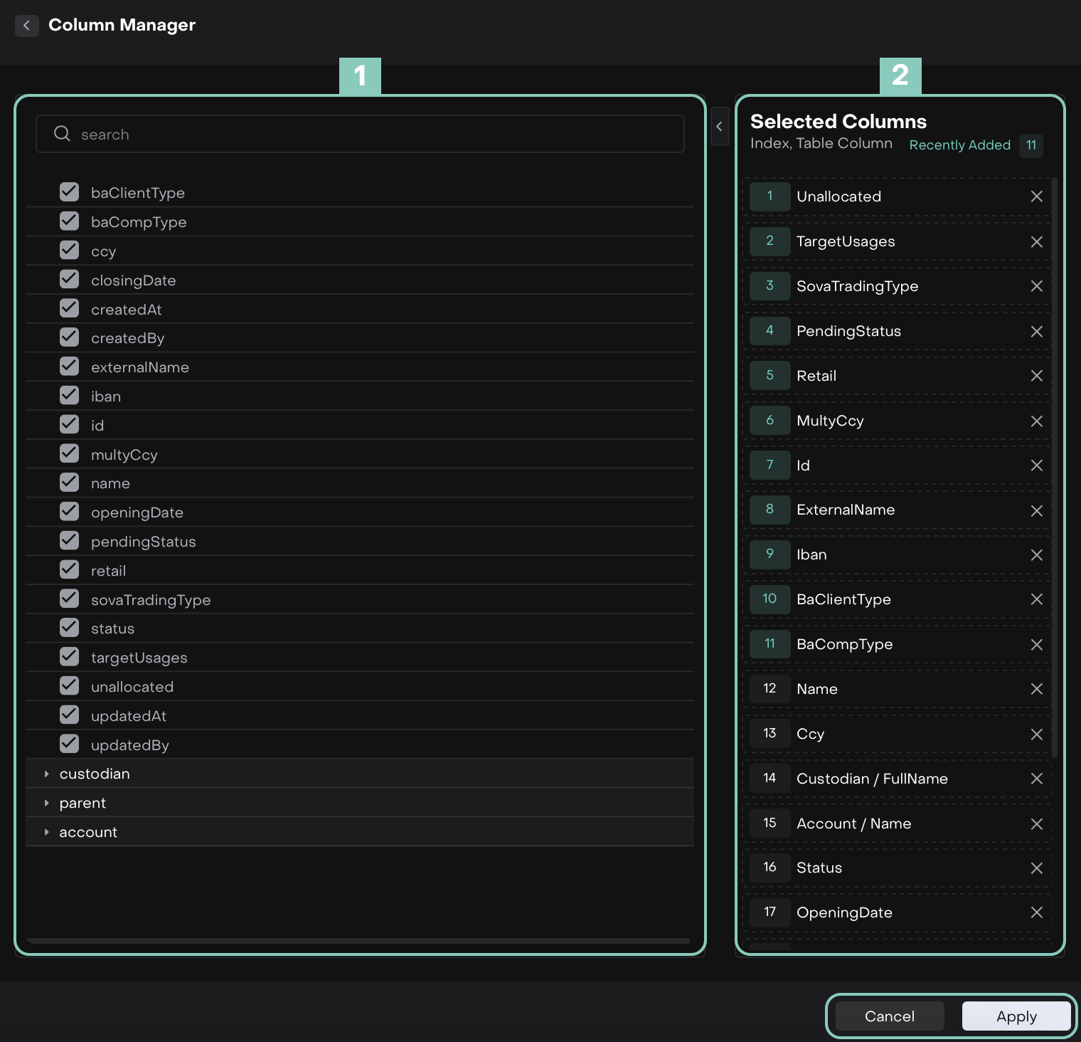 UNALLOCATED | Indicates if the funds or transactions in the account are unallocated. | Helps identify unassigned balances for reconciliation or review. |