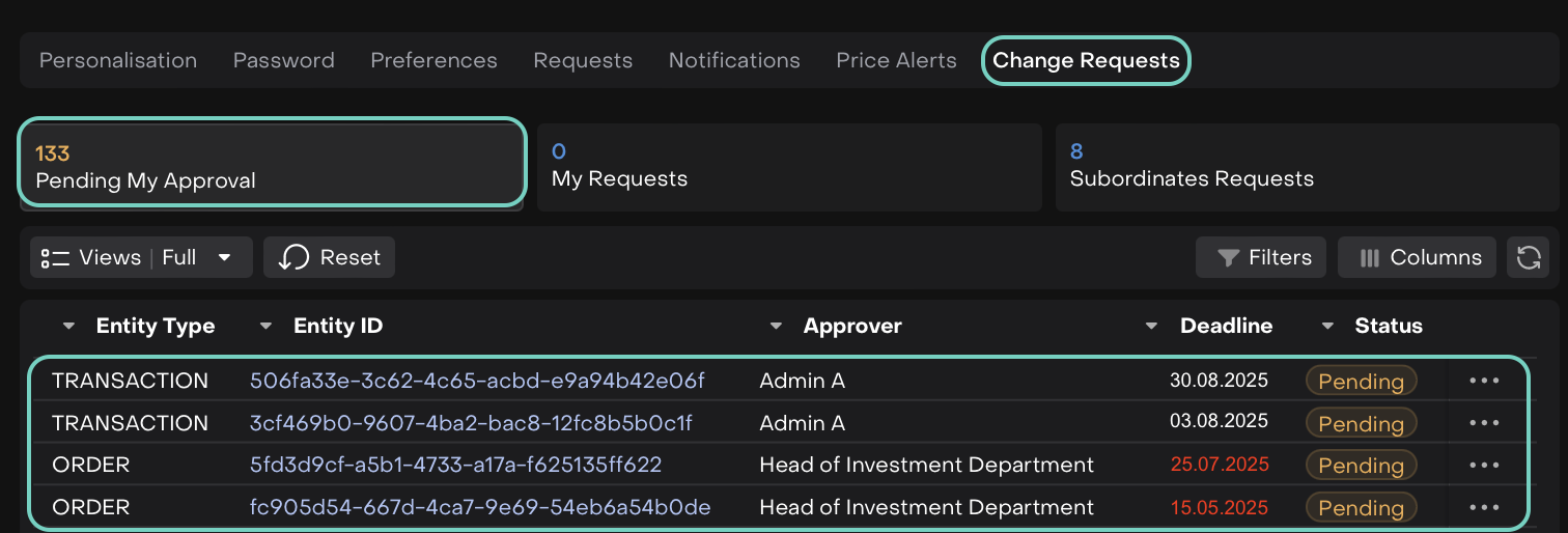 My Requests – requests you created, waiting for someone else’s approval.