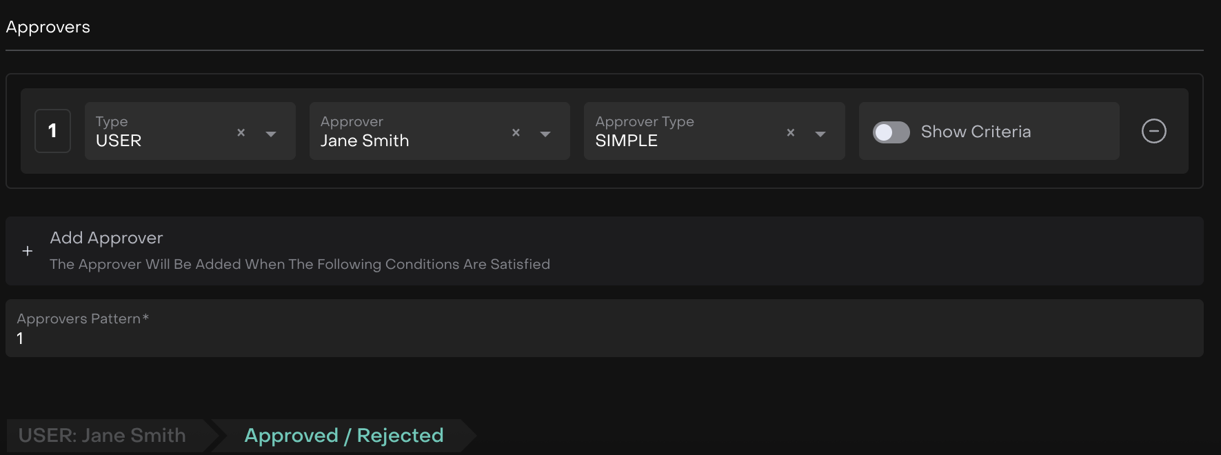 Enter the Approvers Pattern(*) using numbers only to define the approval sequence (e.g.,