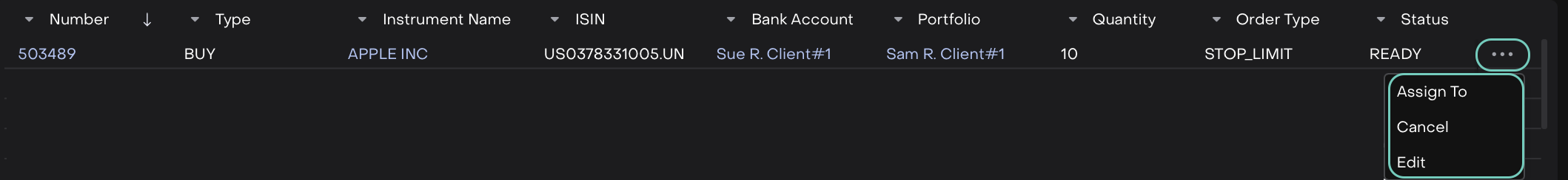 Assign To - Select to whom the order is assigned to be for execution.
