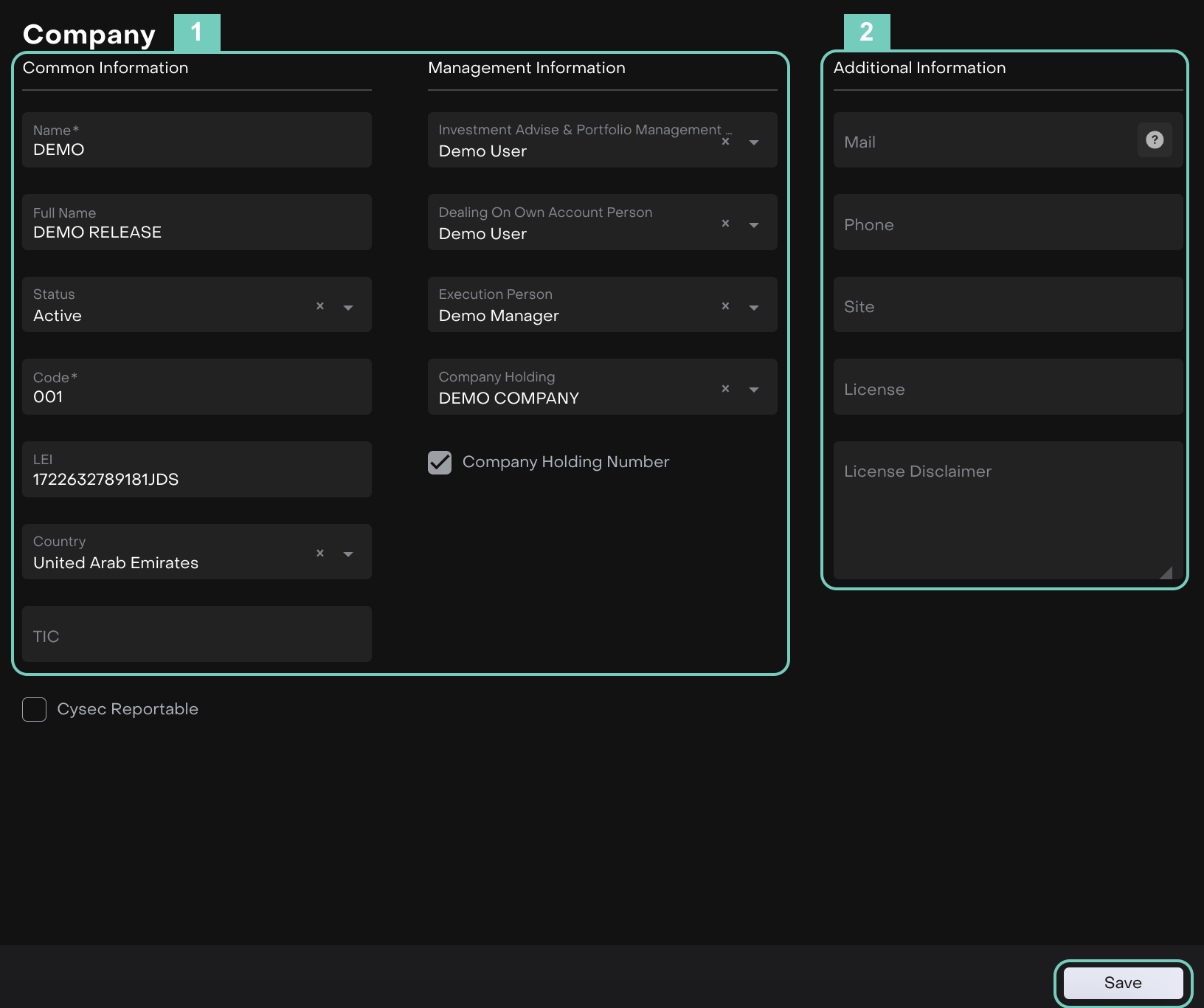 Cysec Reportable – Enable this checkbox if the company is subject to Cyprus Securities and Exchange Commission (CySEC) reporting requirements.