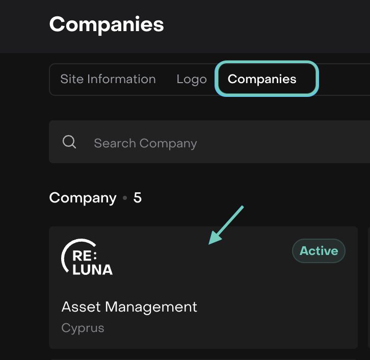 Open Companies tab > Click on the Company to edit the existing Company