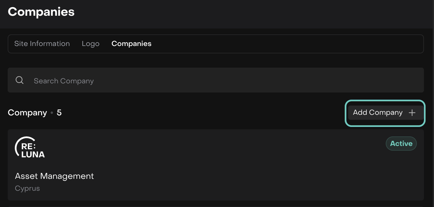 Or click Add Company to create a new Company