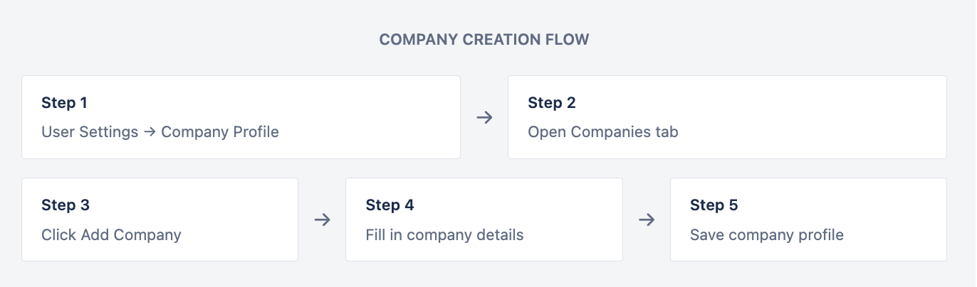 Company Profiles enable you to establish and manage legal entities within the platform. Each company profile contains essential registration details, management information, and operational data required for compliance, reporting, and relationship tracking across accounts and portfolios.