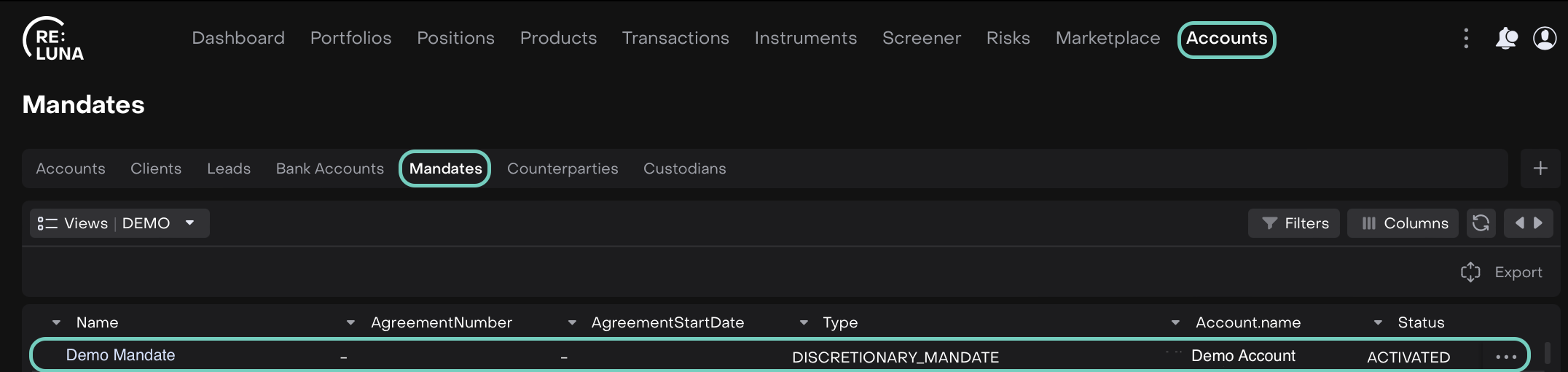 Navigate to Accounts > Mandates tab and select the mandate you want to update.