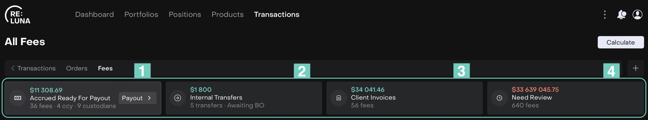 Fee Management on the platform allows you to set up, calculate and manage fees at the mandate level. You can define fee structures, apply them across portfolios and track calculations over selected periods. This ensures consistent and automated fee management across all client accounts, reducing manual effort and improving accuracy.