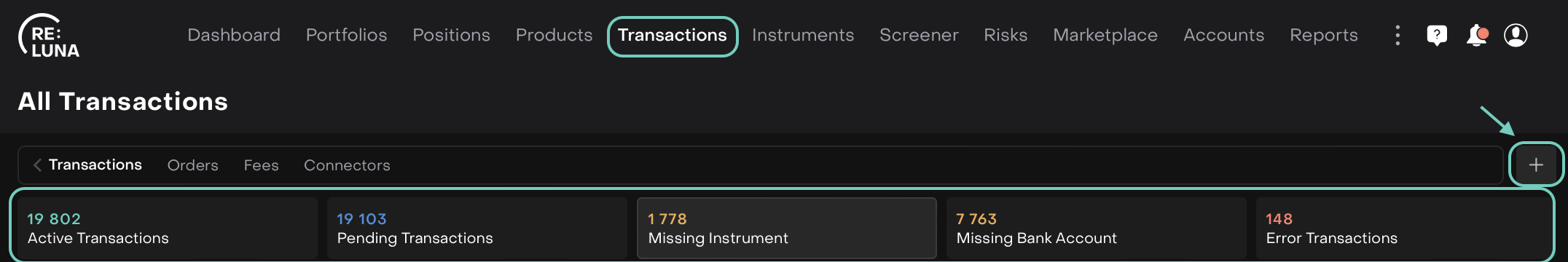 The Reluna platform enables you to manage a wide range of transactions that impact your portfolios, whether you are buying securities, making transfers or processing corporate actions. This guide will help you understand the basics of transaction management and get started quickly.