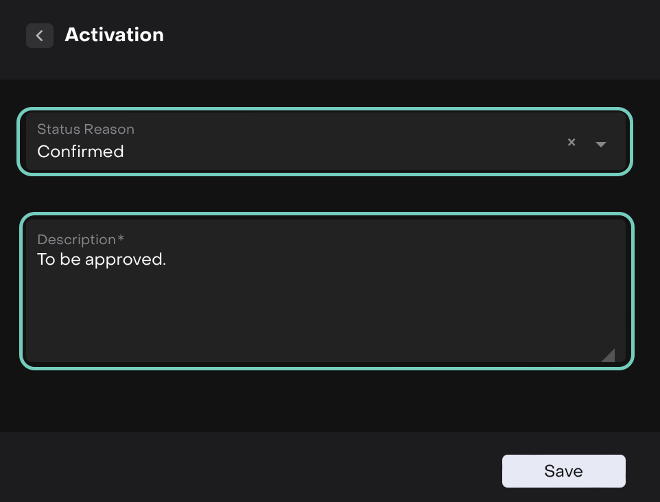 Activation reinstates previously deactivated transactions (with Error status reason) so that they are again included in portfolio calculations. Approval is the preceding confirmation step that typically applies to transactions in a Pending state.