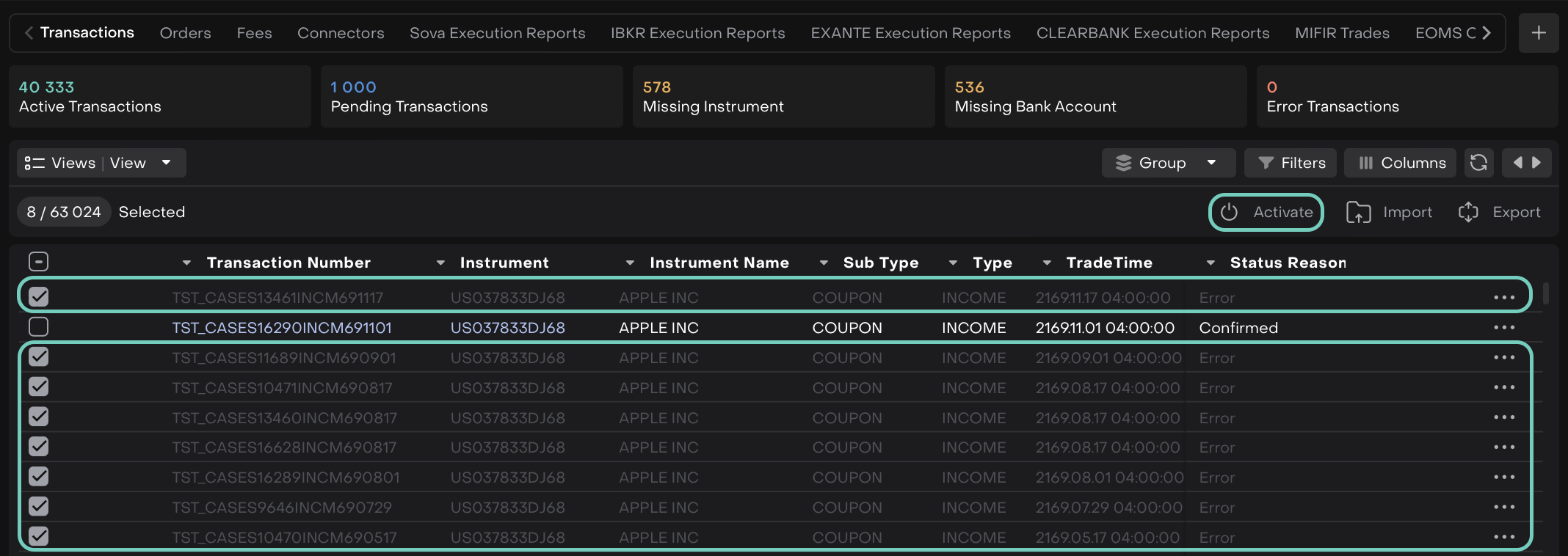 Managing Transactions in Bulk: Activate, Approve and Deactivate