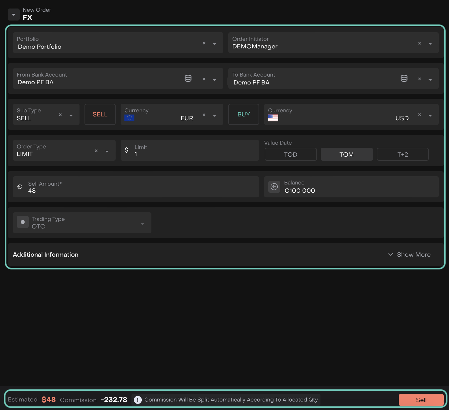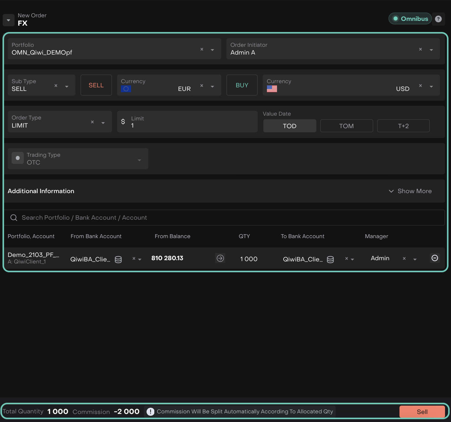 After filling/reviewing the form, click Sell or Buy to create the SELL/BUY FX order.
