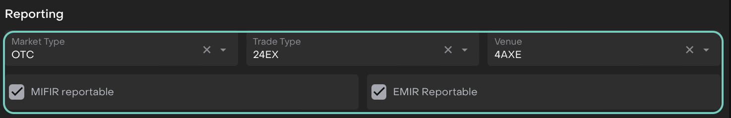 EMIR Reportable (Checkbox) | Marks trades reportable under EMIR regulation. |