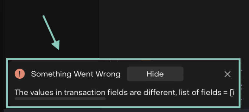 If any selected transactions do not meet the above criteria, the platform will display an error message highlighting the mismatched fields.