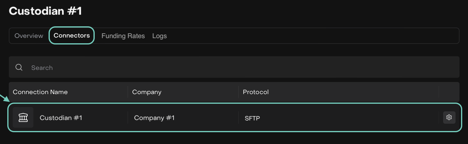 Custodian Integration via the Connectors Tab