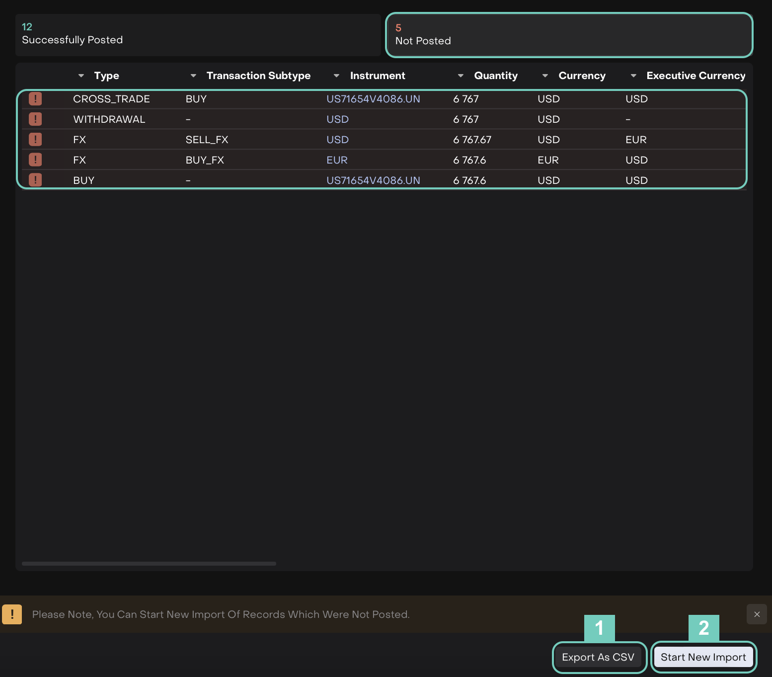 If any record couldn’t be posted, it will appear under the Not Posted tab for further action.