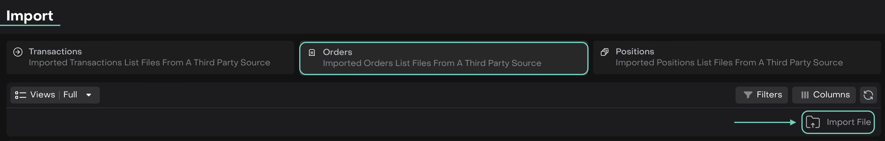 There are times when orders are created or executed outside the platform, maybe by a custodian, a third-party broker or manually managed by your team. With the Order Import feature, you can easily bring these external orders into the platform to maintain a complete and auditable history.