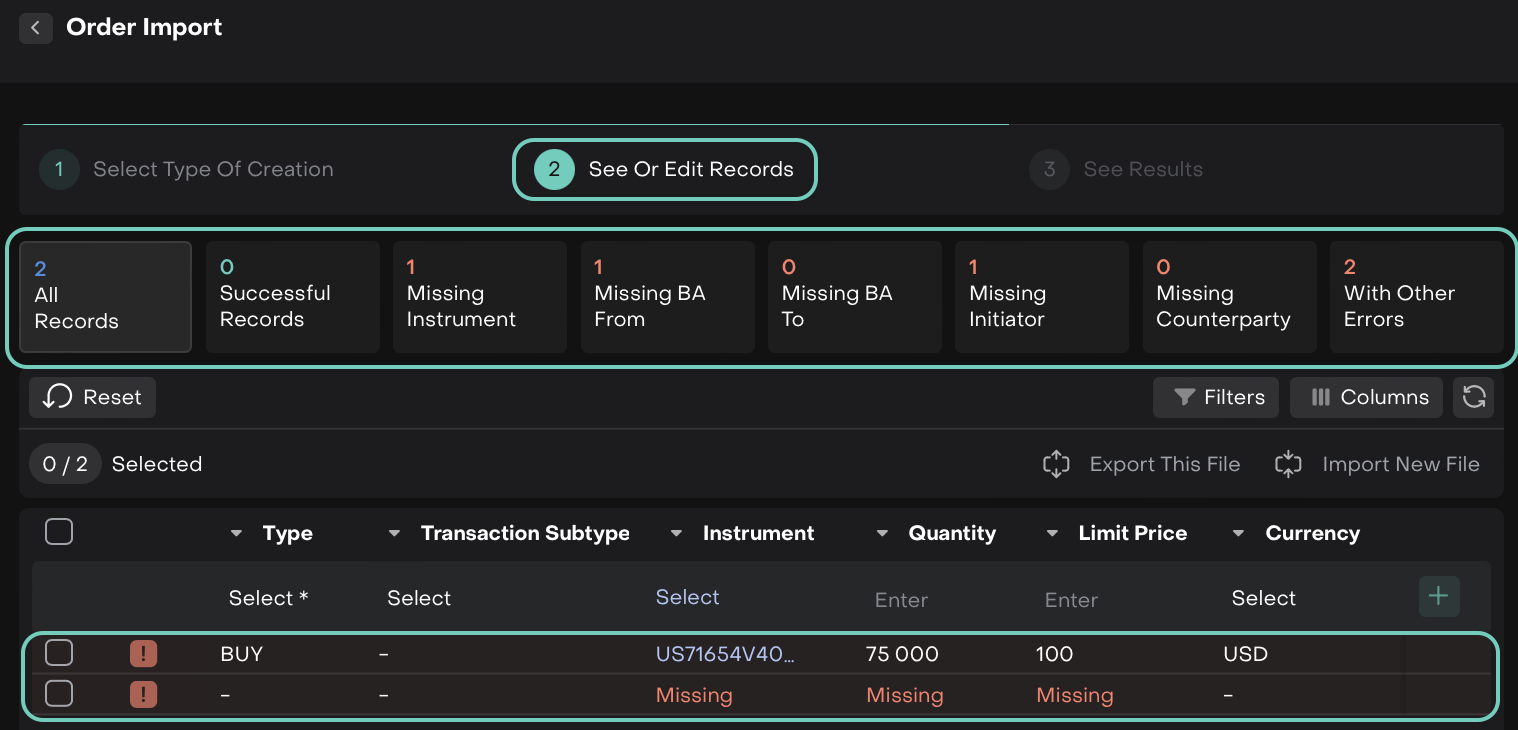 Here, you'll see all imported or created records categorized into validation blocks.