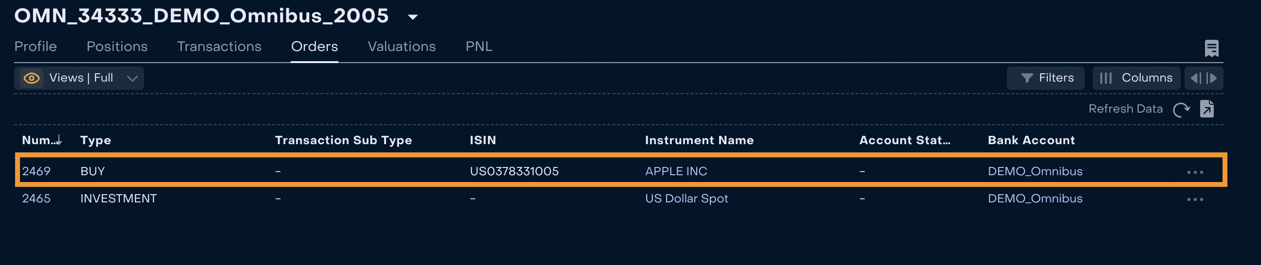 Go to Omnibus Portfolio > Orders.