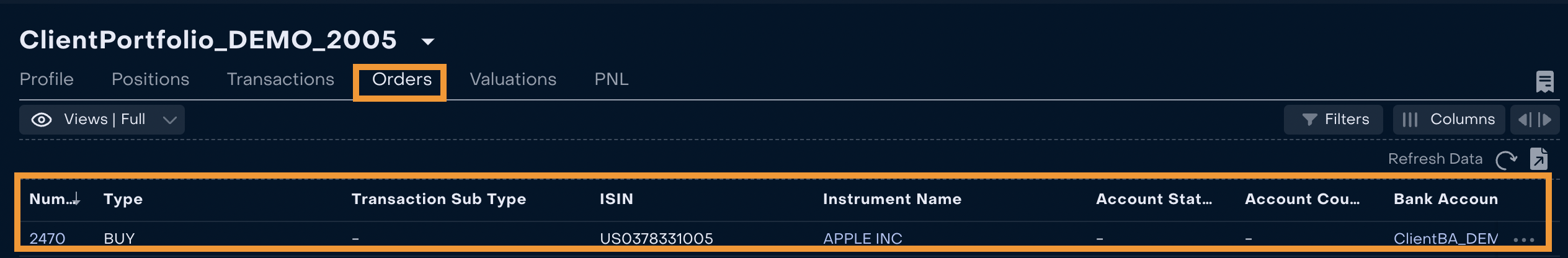 Monitor the order in the Omnibus Portfolio