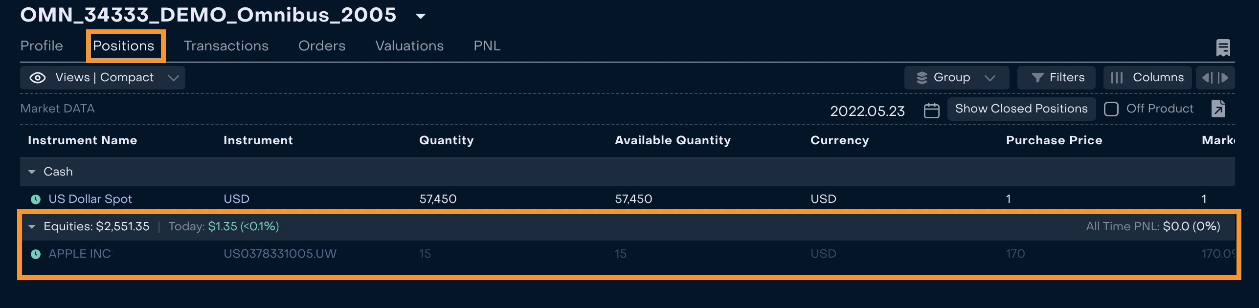 All orders and transactions related to Clients flow into this Omnibus Portfolio.