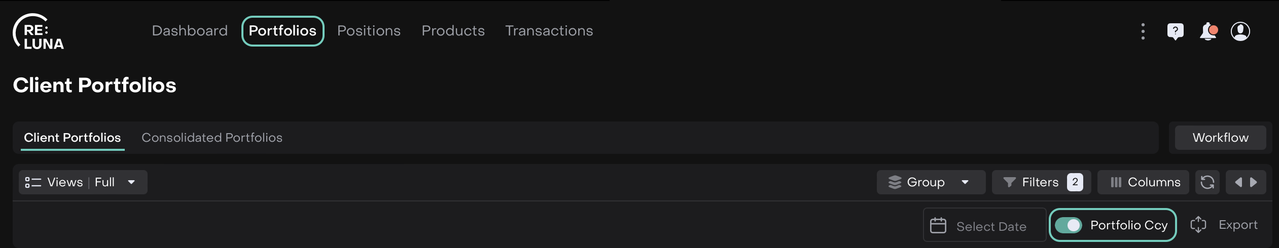 On Reluna Platform, you can easily view your Portfolio Cash, AUM, and PNL in multiple currencies (USD, EUR, RUB, GBP, CHF) for any specific date.