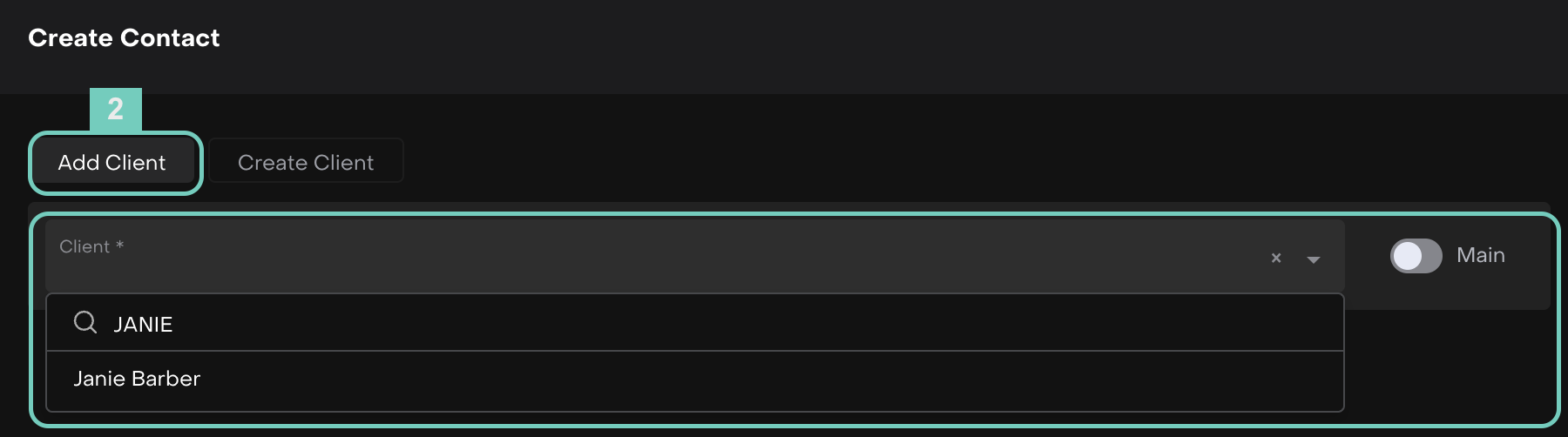 Choose to Add Existing Client or Create New.