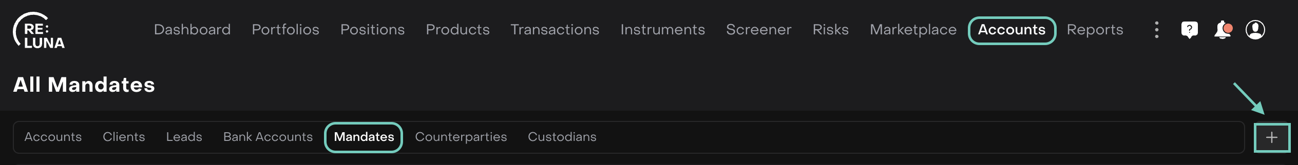 Go to Accounts > Find Mandates tab.