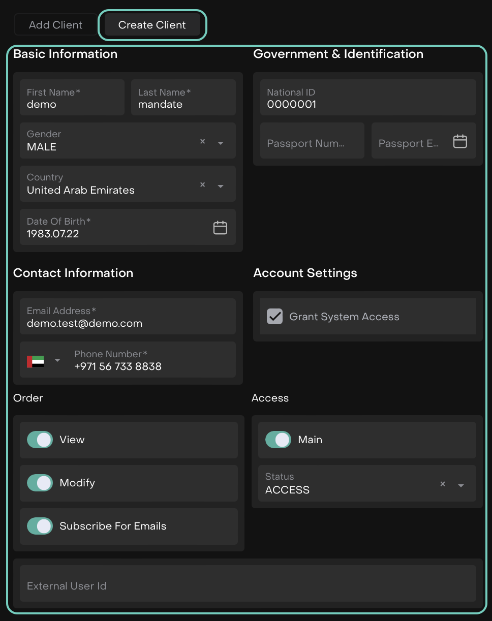 Clients can be created automatically through the Client Portfolio creation workflow.