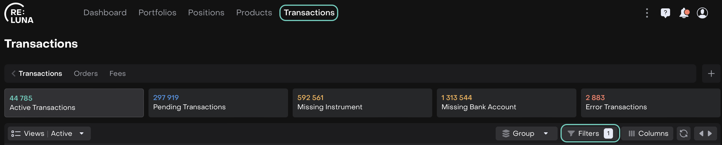 Navigate to the object you want to filter (e.g., Transactions) and open the Filter Manager.