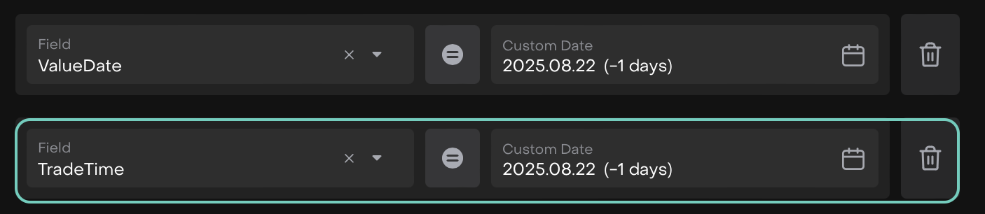 Choose a field with type Date or Date & Time (e.g., Trade Time).