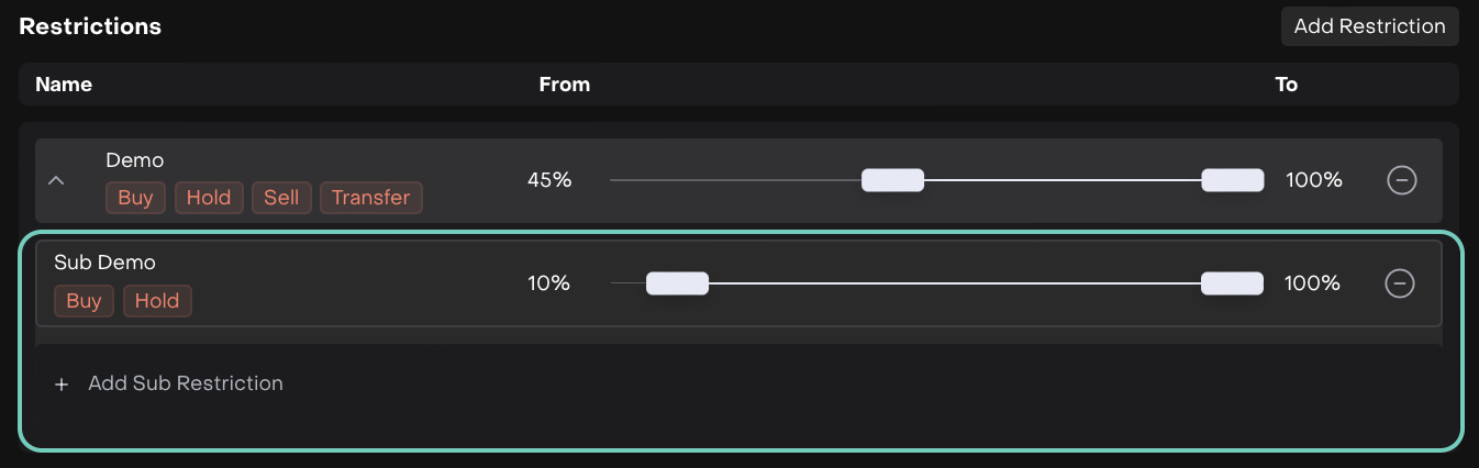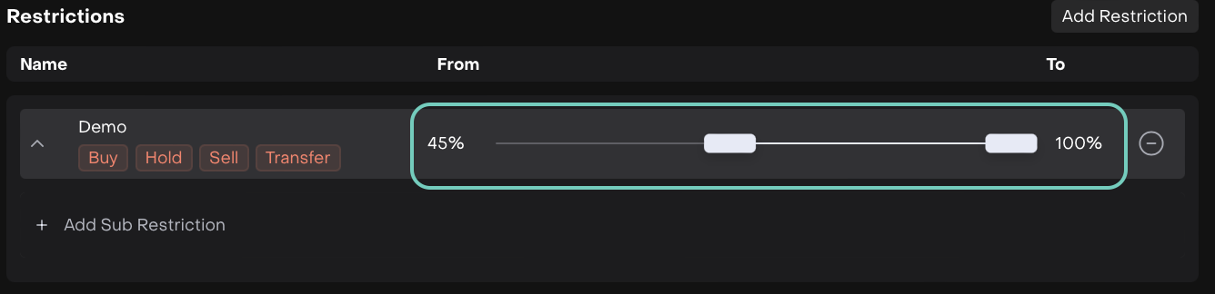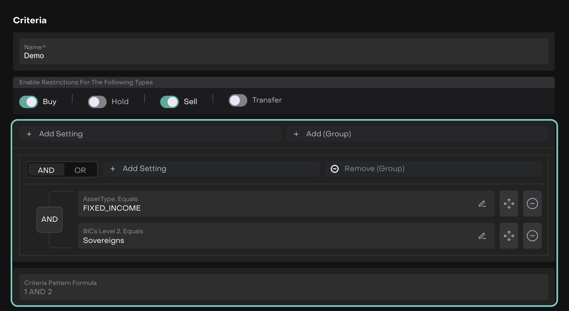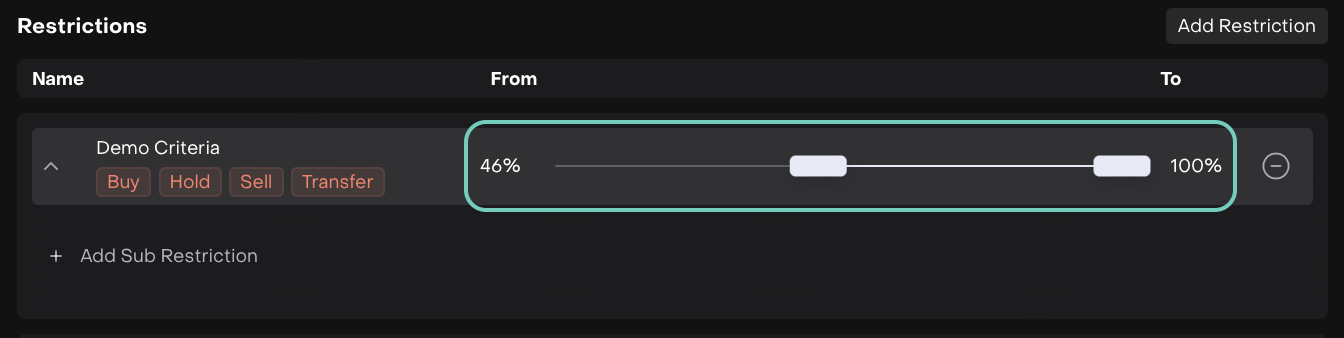 Set up the Criteria and enable Restrictions for the following types: Buy/Hold/Sell/Transfer.