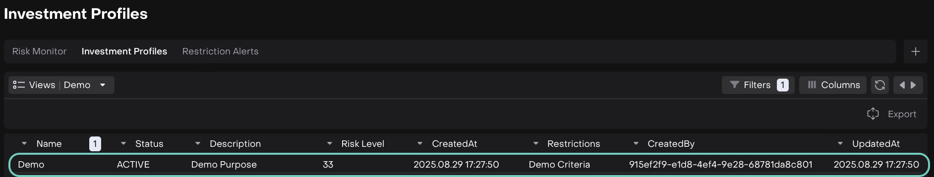 This module is designed for risk managers, compliance officers and senior stakeholders responsible for investment oversight. With built-in monitoring, rule enforcement and validation mechanisms, it ensures that risk is not only measurable but also actively managed.