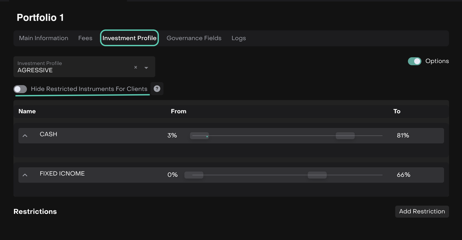 Manage Investment Profiles & Restrictions