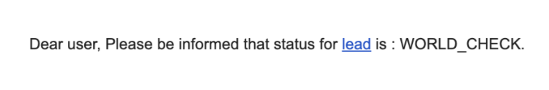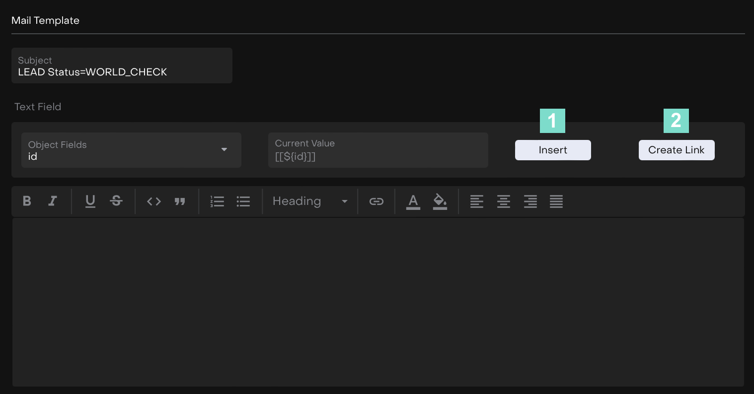 LEAD Status=WORLD_CHECK).Scroll to the rich text editor under Text Field.