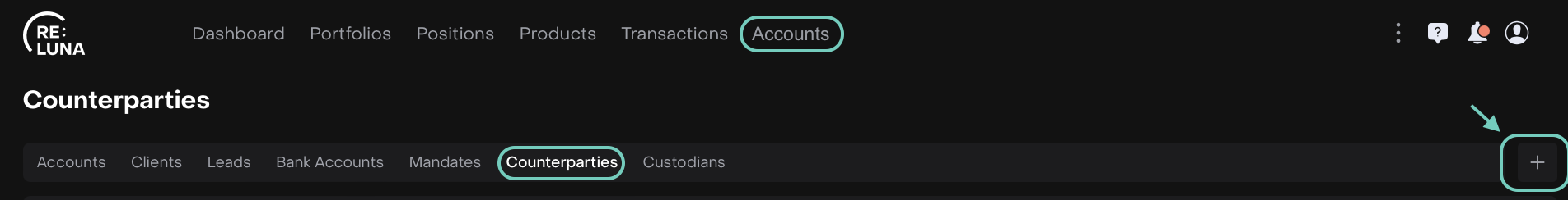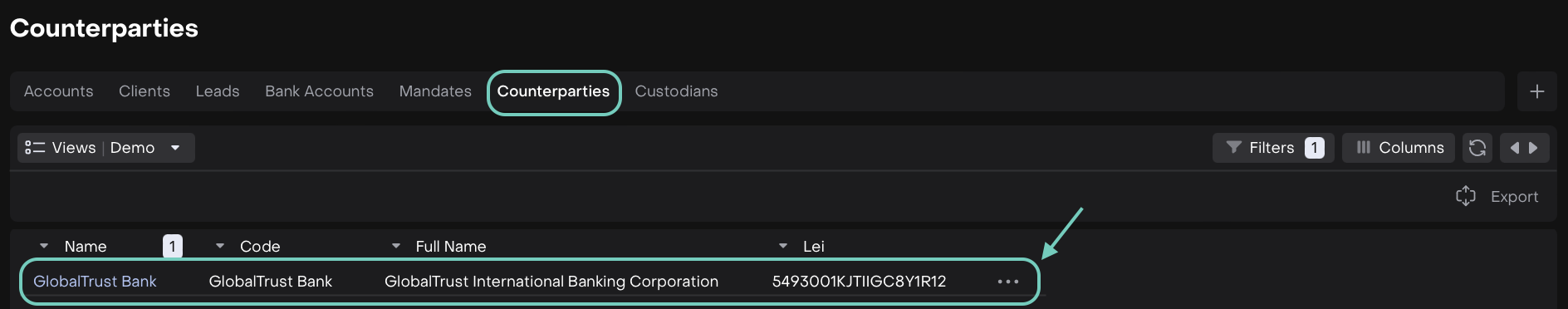 In most cases, you’ll start by creating a custodian and the counterparty will be mapped or generated automatically.