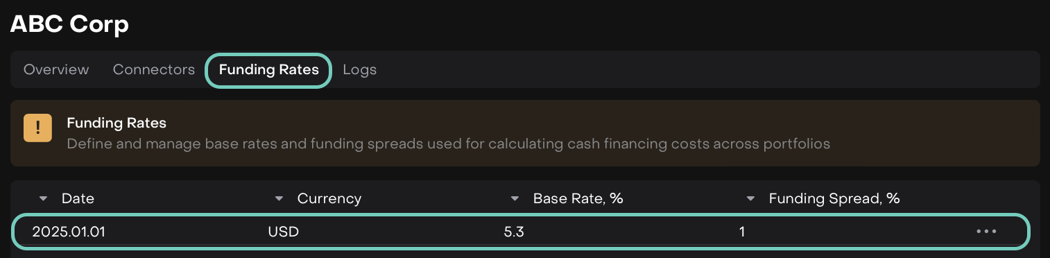 Once added, these inputs define how your daily funding cost or cash interest will be calculated for portfolios' bank accounts using this custodian.