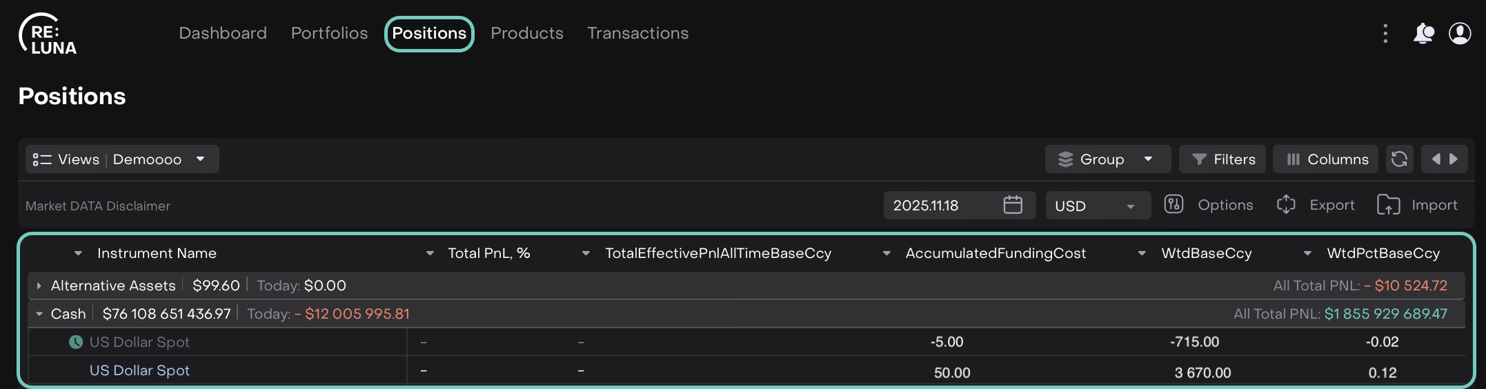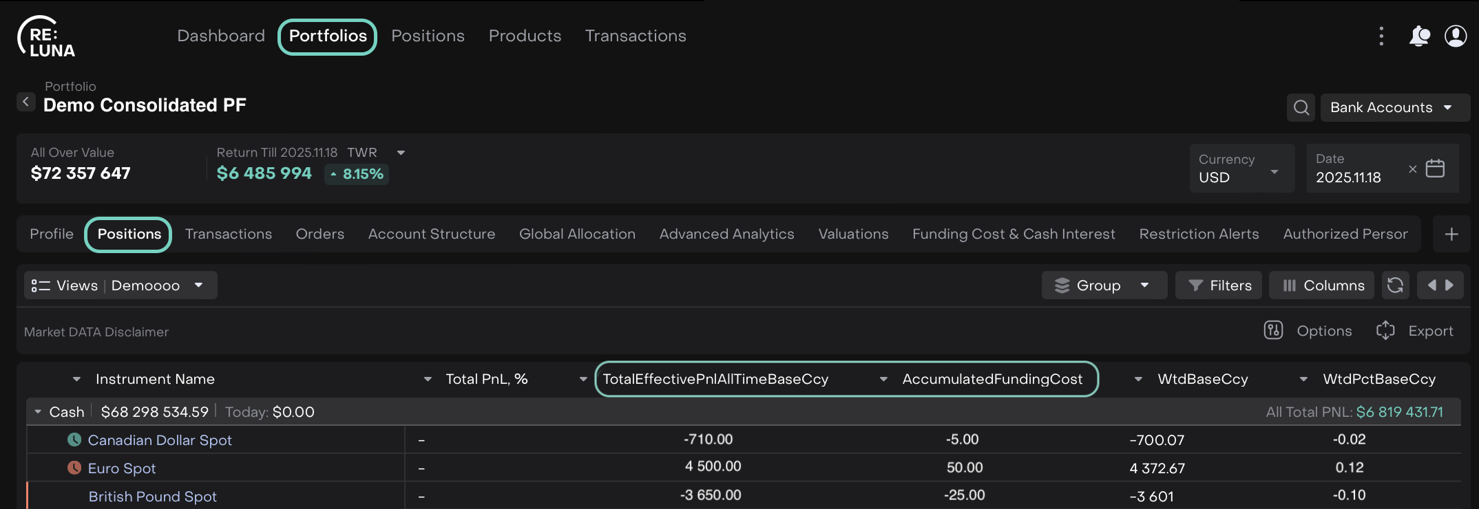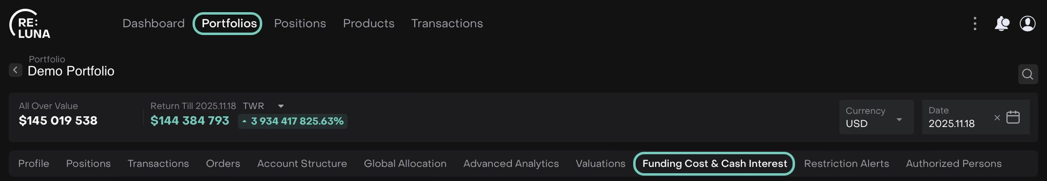 Each position now includes Funding Cost and Cash Interest fields, automatically distributed based on the portfolio’s calculations.