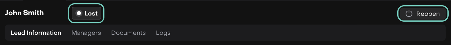 Once a Lead is created, additional tabs such as Managers and Documents become available for you to complete and submit the required details.