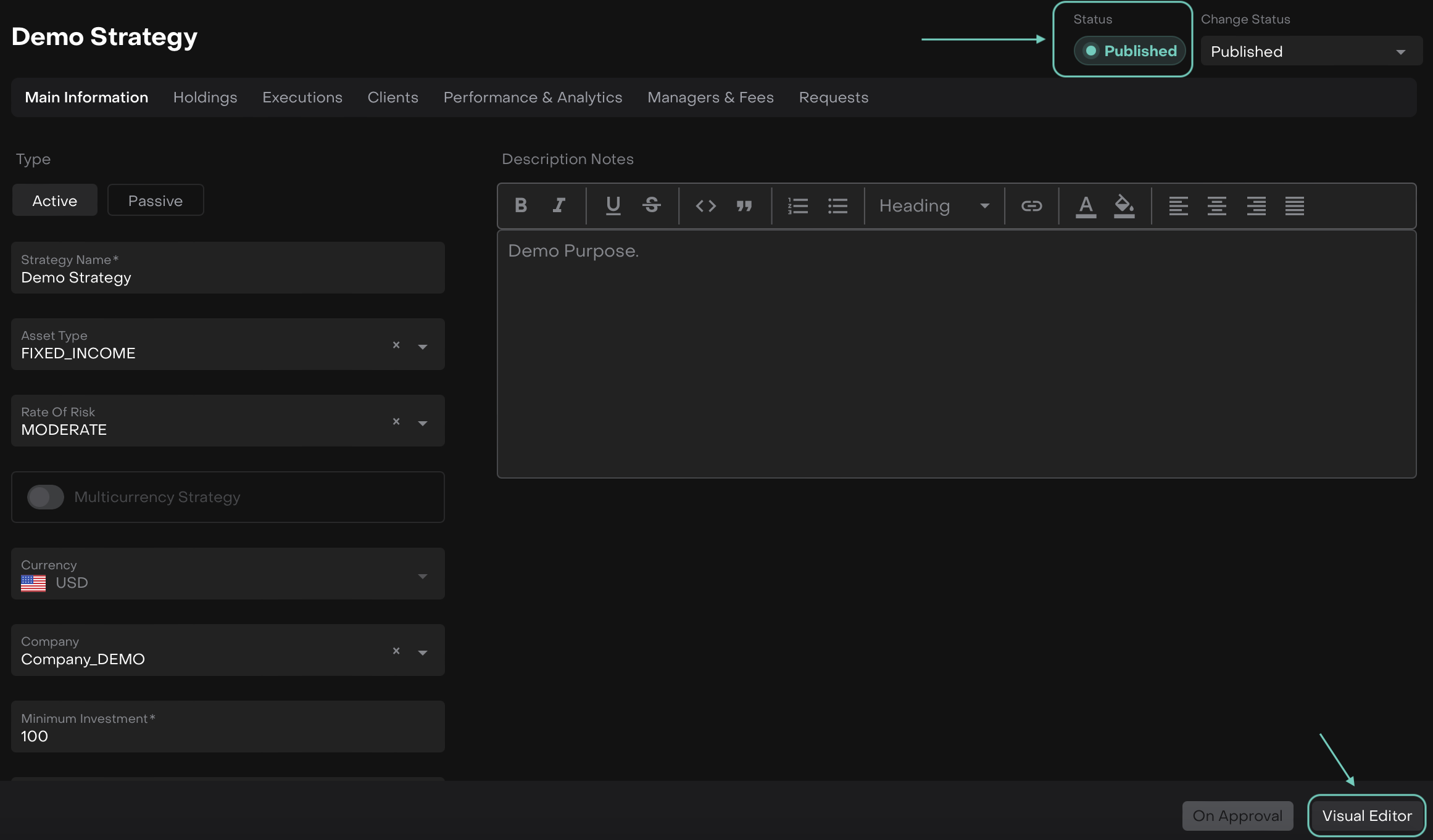 Once Published, the Visual Editor button appears.