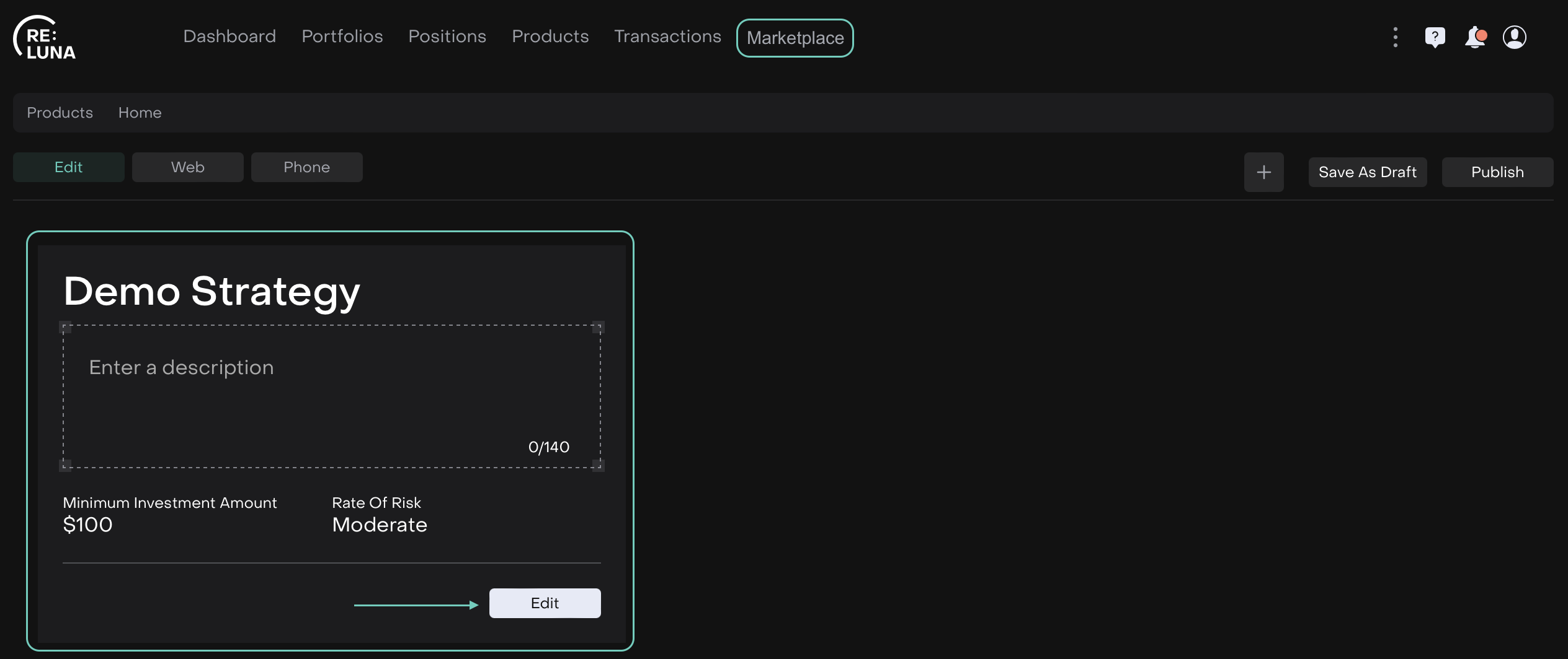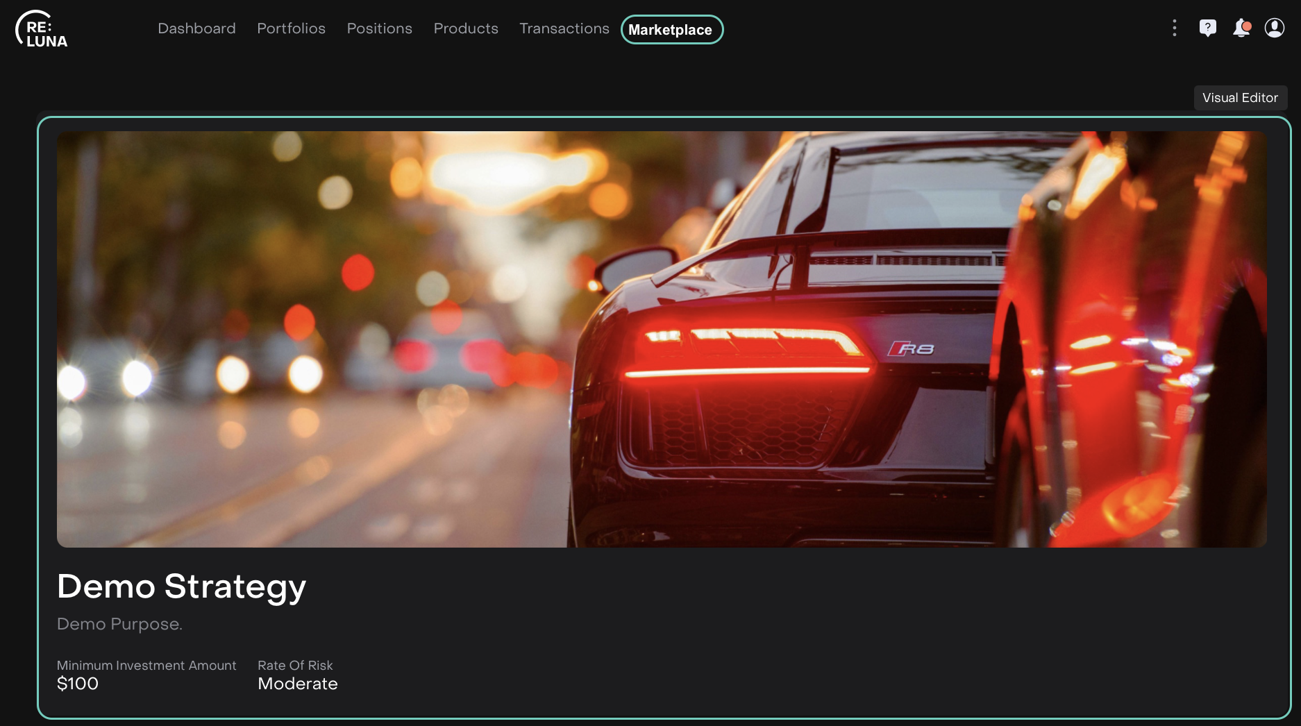 The Marketplace on the platform is your centralized hub to explore, create, publish and share investment products, including strategies and recommendations. Here, you can also apply your strategies directly to an offering or client portfolio.