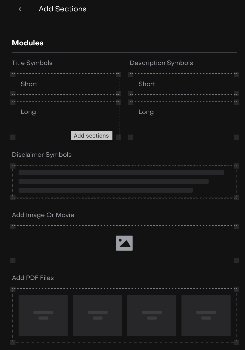 Click the + icon to add new sections.