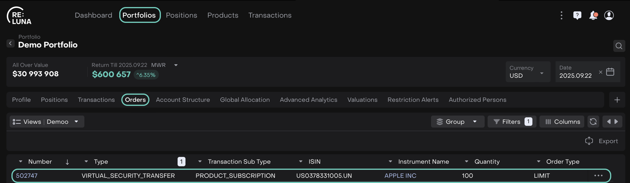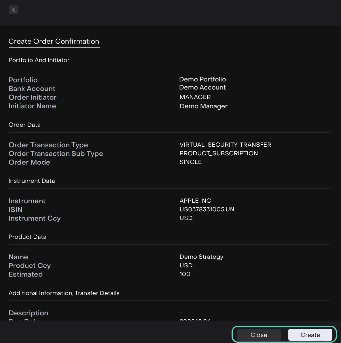 Product Subscription | Securities withdrawn from Bank Account and moved into the Strategy (Sub Type = In). |
