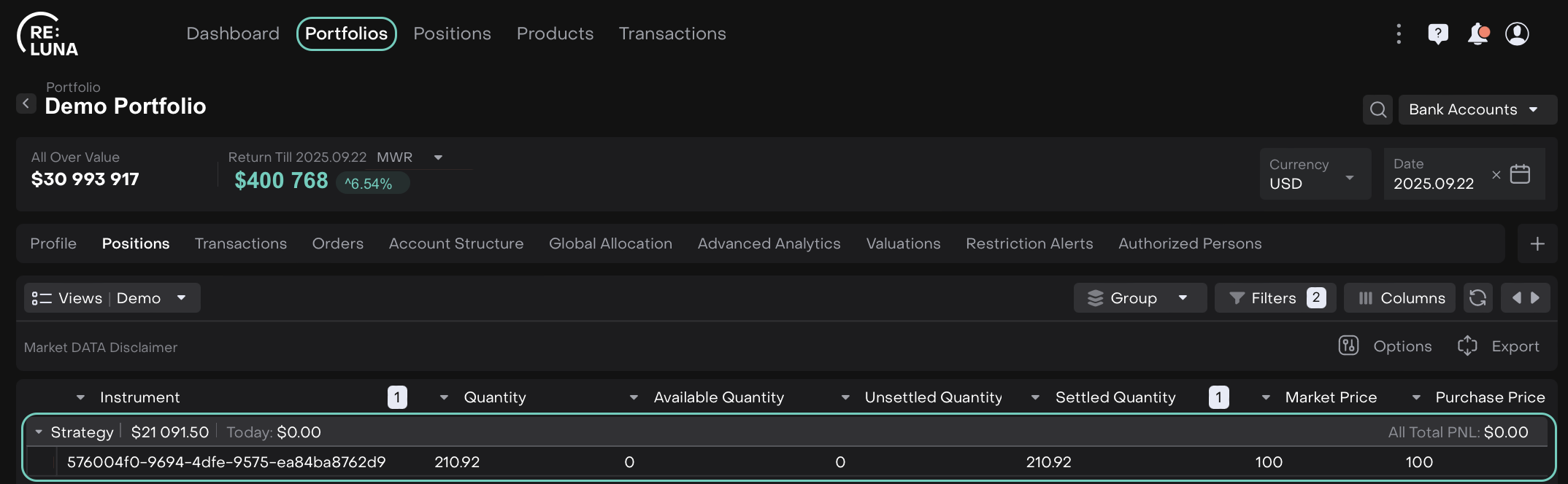 Upon submission, the platform processes it virtually and generates the necessary transactions to move assets into or out of the strategy.